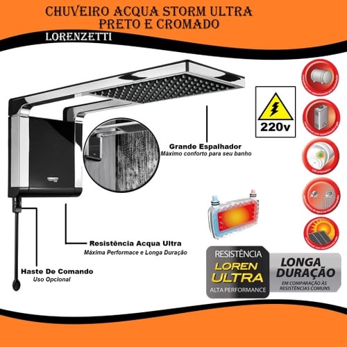 Chuveiro Lorenzetti Acqua Storm Black Ultra 7800W 220V Preto e Cromado 7510054