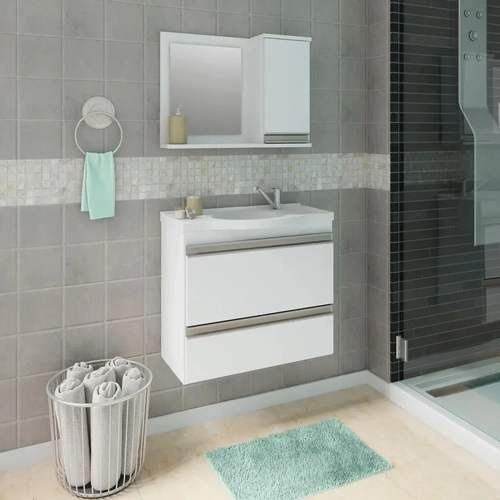 Gabinete de Banheiro Grecia Com Espelho Branco MGM Móveis 882.2