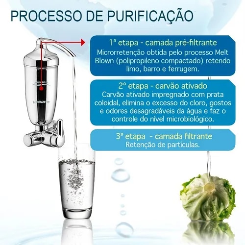 Filtro Acqua Bela Torneira Lorenzetti Filtro de Água com Torneira otimiza espaço e garante todos os benefícios que uma água saudável pode trazer para sua vida! Essa associação – filtro com torneira – permite que você escolha entre lavar a louça ou utilizar água filtrada para beber, preparar sucos ,cafés, chás, ou ainda, lavar verduras e frutas. O filtro com torneira Acqua Bella vai retirar elementos físicos da água como barro, limo, ferrugem, vai eliminar o excesso de cloro, gostos e odores desagraveis da água e ainda vai fazer o controle do nível microbiológico. Ele otimiza espaço,sem esquecer de um toque de modernidade e jovialidade garantindo todos os benefícios que uma água saudável pode trazer para sua vida.