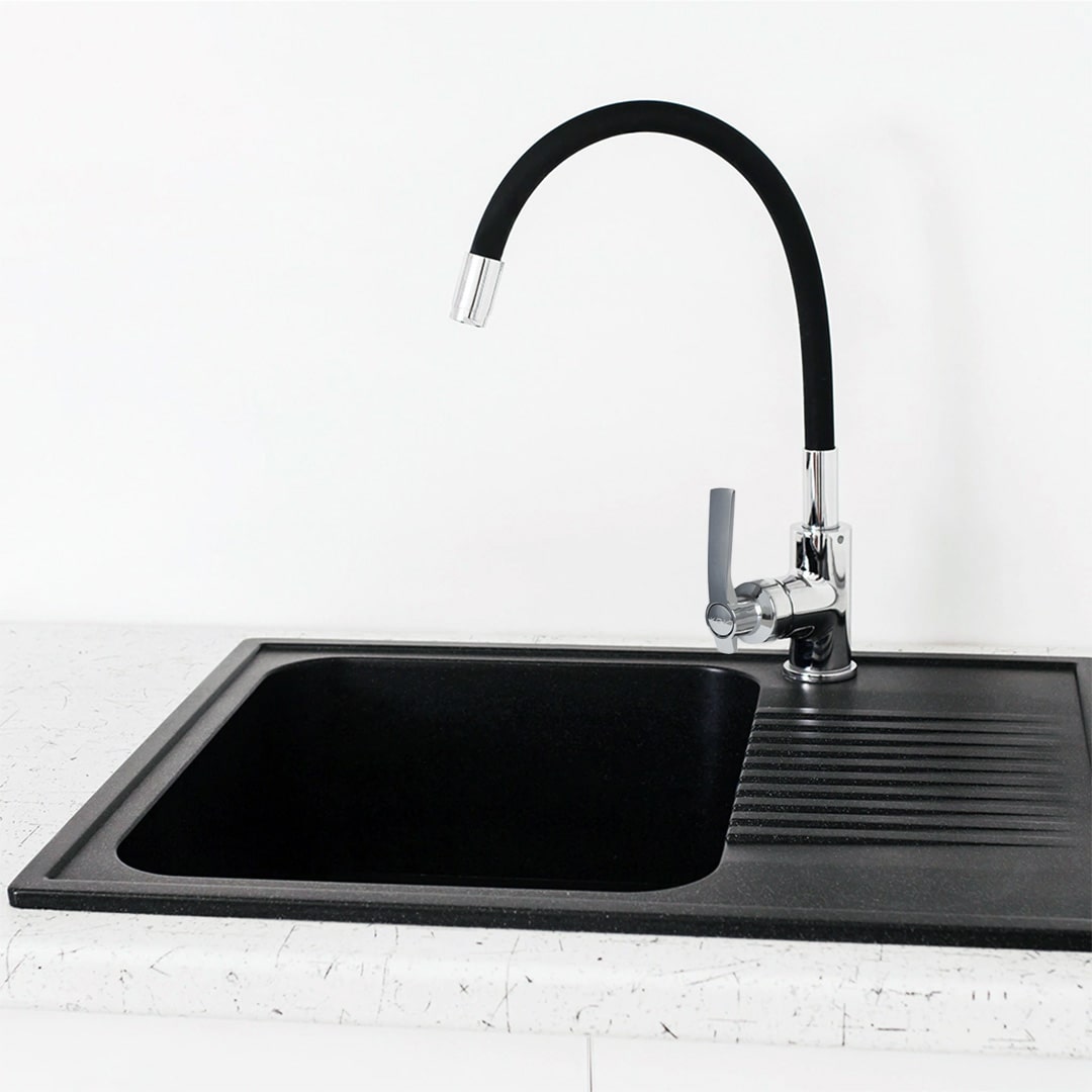 Com mangueira de silicone flexível, essa torneira oferece liberdade total de movimento. Direcione o fluxo de água facilmente para alcançar cada canto da pia e simplifique a limpeza de utensílios e alimentos.